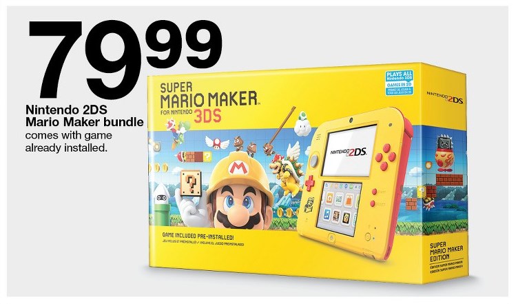 As far as Nintendo goes, though it’s not entirely a sale, we now know that a Mario Maker 2DS bundle will be offered this holiday. It’ll include a pre-installed copy of the game along with a yellow and red design for $80.