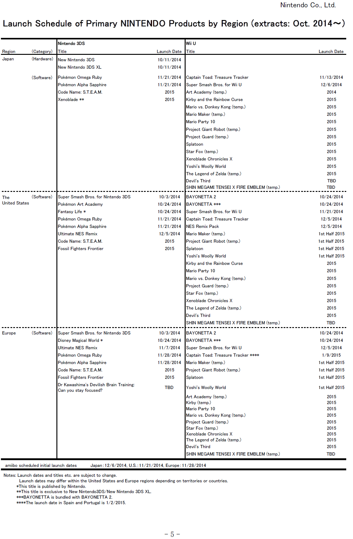 Latest Nintendo release schedule, million sellers list
