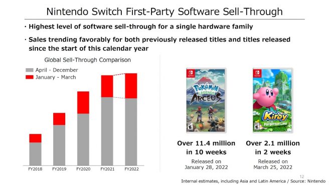 In its latest financial results, Nintendo highlighted how Switch saw the highest level of software sell-through for a single hardware family from the company.