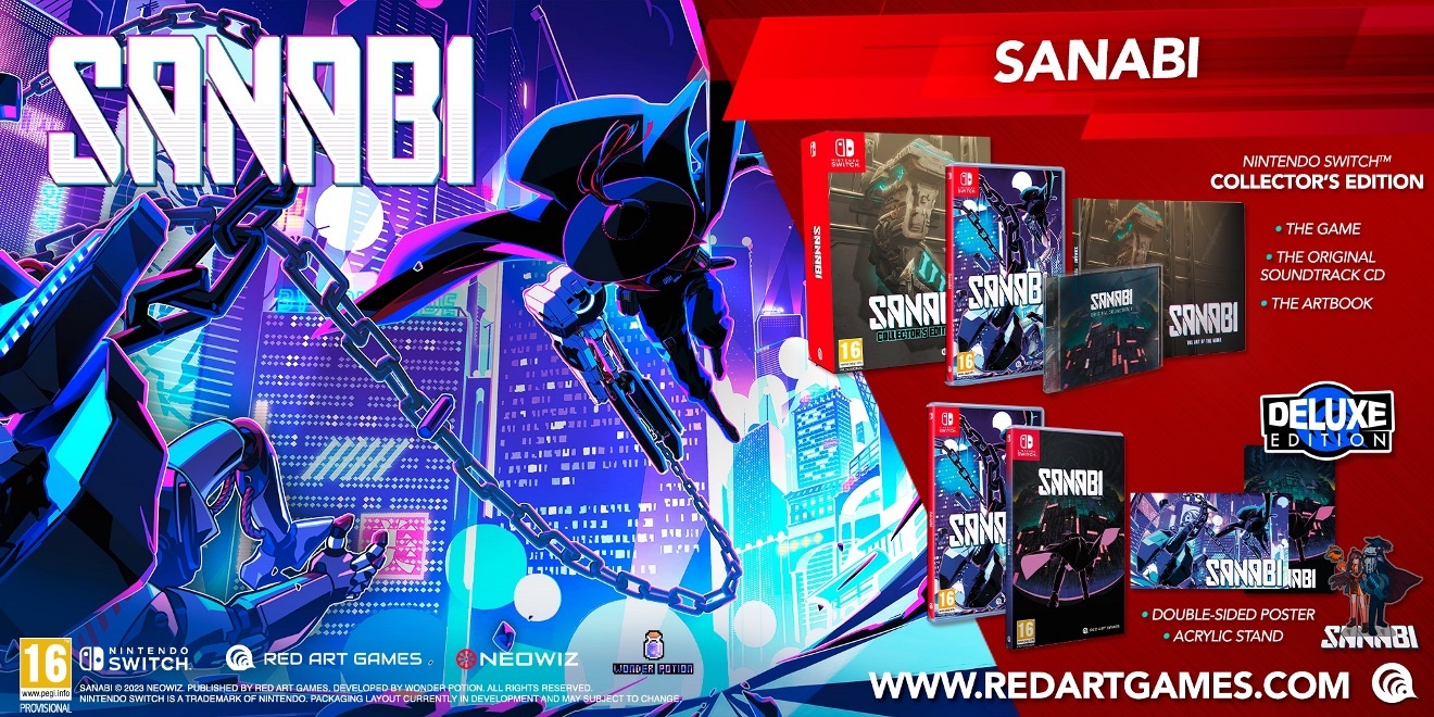 Sanabi will be sold with two different versions. The Deluxe Edition includes a copy of the game, a sleeve featuring alternate cover art, a double-sided poster, and an acrylic stand. The collector’s edition features a copy of the game, an art book, and the official soundtrack on CD.