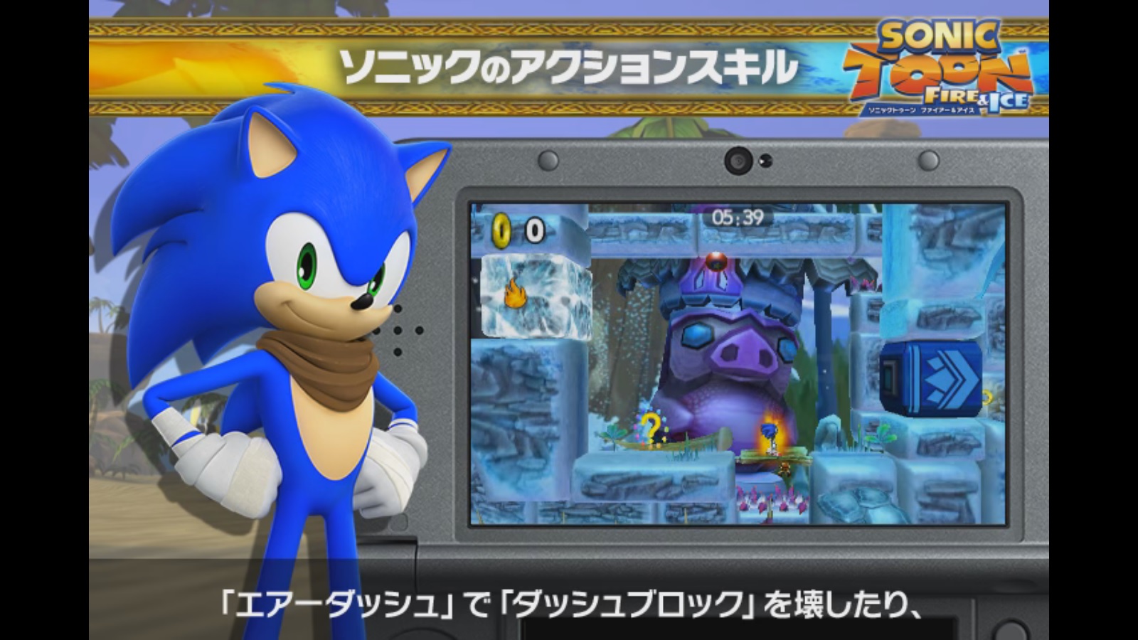 A new Japanese Sonic Boom: Fire & Ice video is now online showing Sonic’s action skills. In the video below, the air dash and speed dash are both featured.