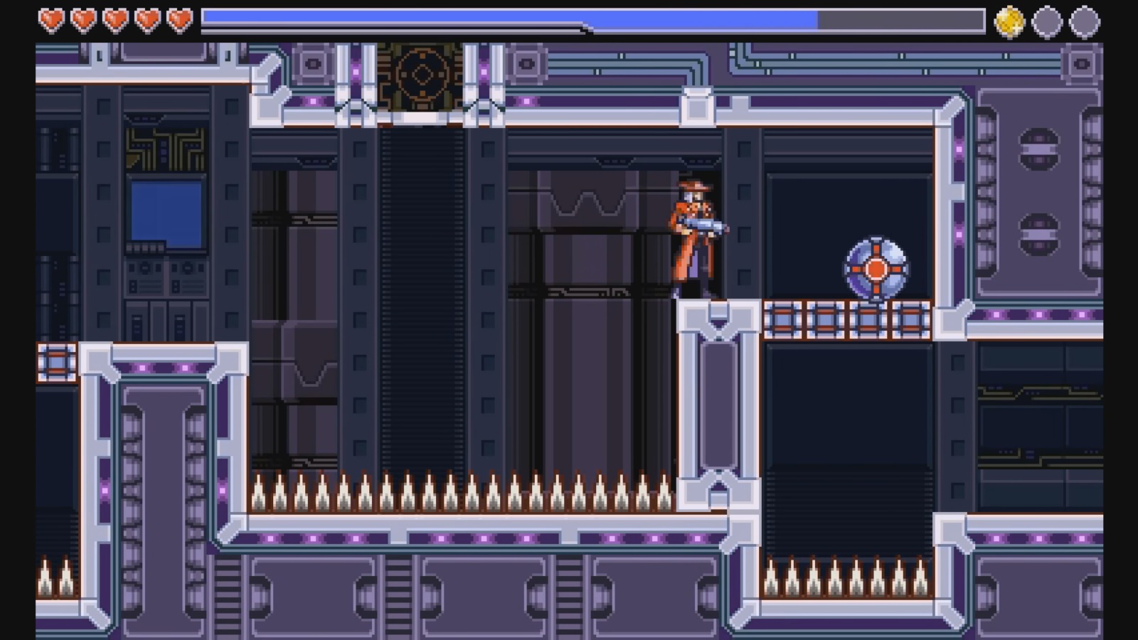 There’s not a lot left that’s the same! The code is largely the same, but we’ve replaced all the assets. The graphics are all new, with a pixel art style that feels like a 16-bit era game. Last time around the audio side of the game suffered due to the tight space restrictions of DSiWare. The music and sound effects are all new this time around, and are much higher quality now that we don’t have to worry about space restrictions. Players familiar with the original game will still find plenty of surprises in the DX version. The levels have all been recreated from scratch. I usually tried to stay faithful to the original designs, but there are plenty of cases where I removed or changed sections that I wasn’t happy with. I made sure to add new sections to every level, and also included several all new levels. The DX version is on track to have about 50% more rooms than the original game did.