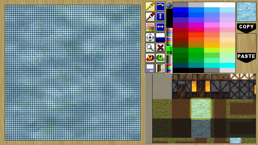 Tiles are comprised of 64×64 tile pixel art that is assembled into a 16×16 grid. The resulting tile set is a PNG image.