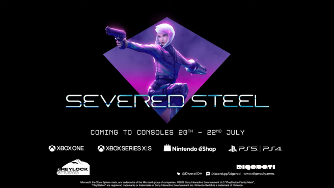 Announced last year at Gamescom, publisher Digerati have announced today that FPS Severed Steel will arrive on Switch next month, July 21. The Switch version will include all core game content currently featured in the PC version: Campaign, Firefight, and New Game + modes, 42 levels, 27 weapons, 5 arm cannons, and 22 game modifying mutators. It will not include the level editor, however. The game will be available physically as well as digitally via the eShop.