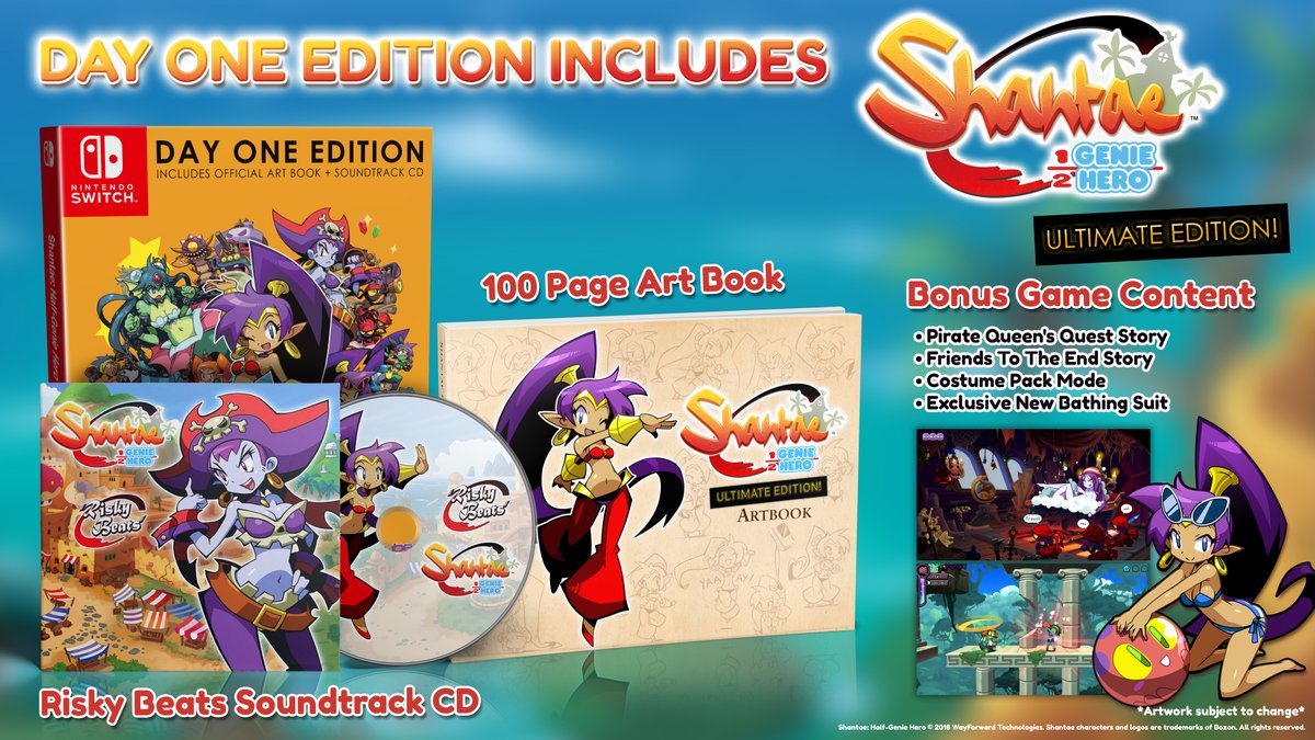 Supplies of the “Ultimate Day One Edition”. When retailers sell through their current inventory, this edition will be gone forever. It will be replaced in the coming weeks by a standalone Switch release titled Shantae: Half-Genie Hero – Ultimate Edition. While it still contains the base game and all DLC, it omits the bonus art book and soundtrack.