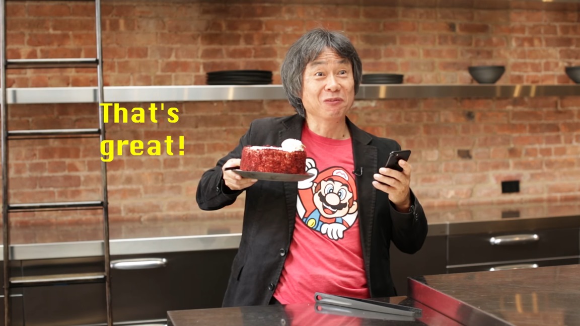 Yesterday we saw Shigeru Miyamoto guessing the size of various objects. If that wasn’t random enough for you, we have a video of Miyamoto playing Super Mario Run while eating cake. You can see that below.