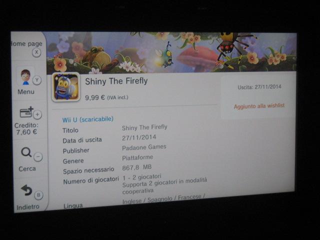 Shiny the Firefly is reaching the European Wii U eShop next week, according to a listing on the digital store. The game will be available for €9.99.