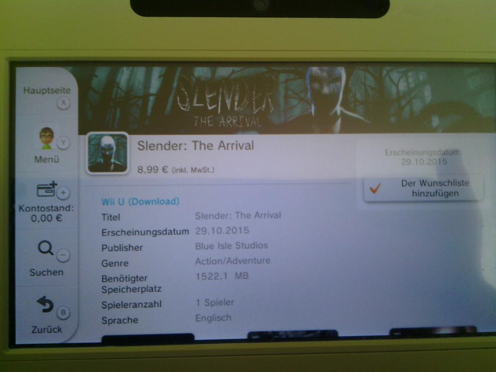 The European eShop is currently listing an October 29 launch for Slender: The Arrival. You’ll be able to pick it up for €8.99.