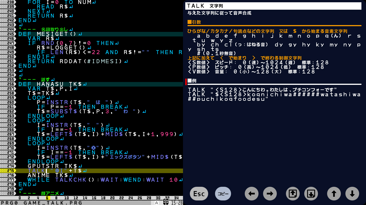 CHKMML function has been added on Ver.3.6.0. This is when you want to check MML of the BGMPLAY command works properly or not. It’s the BASIC language function for this update.