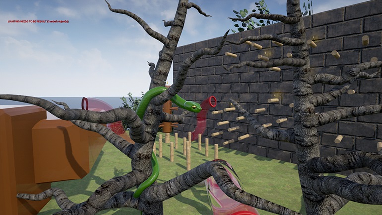 The image attached above is a “super early” look at Snake Pass during an internal game jam. Ultimately, the company decided to move forward with the project after selecting it out of a number of different pitches.