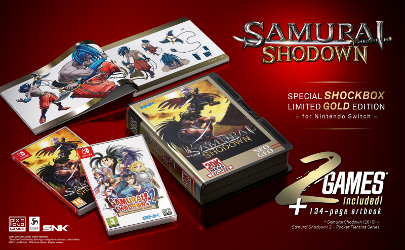 Pix’n Love, SNK, and Deep Silver are teaming up to offer a special collector’s edition for Samurai Shodown. Known as the “Shockbox Gold Edition”, it includes physical versions of Samurai Shodown and Samurai Shodown! 2 – Pocket Fighting Series for Switch, along with a 134-page art book with numerous illustrations and design documents. 2,500 copies will be produced.