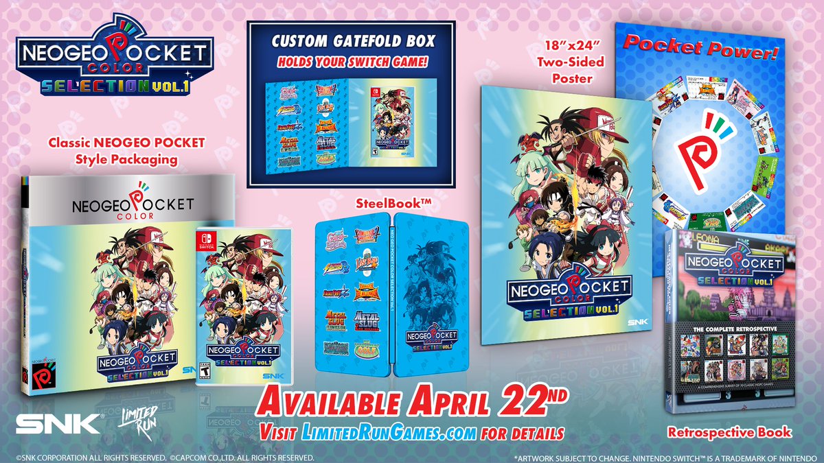 In partnership with SNK, Limited Run Games has announced that it will produce a physical version of Neo Geo Pocket Color Selection Vol. 1. Fans can choose between a standard copy or collector’s edition. For the latter version, you’ll be getting extra goodies including a retrospective book, a double-sided poster, a steelbook, and classic-style packaging.
