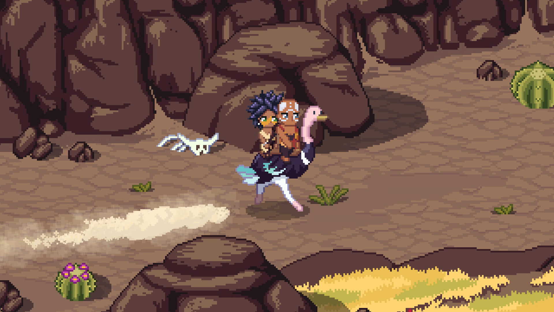 When Roots of Pacha lands on Nintendo’s console, it’ll launch at version 1.1. It’ll come with feature parity and cross-platform multiplayer with the Steam version, romance options with Voda, smoke signal gifts and letters, new cutscenes, and more alongside a number of quality-of-life improvements. Further updates are planned “for 2024 and beyond with the intent to maintain feature parity between console and PC versions.”