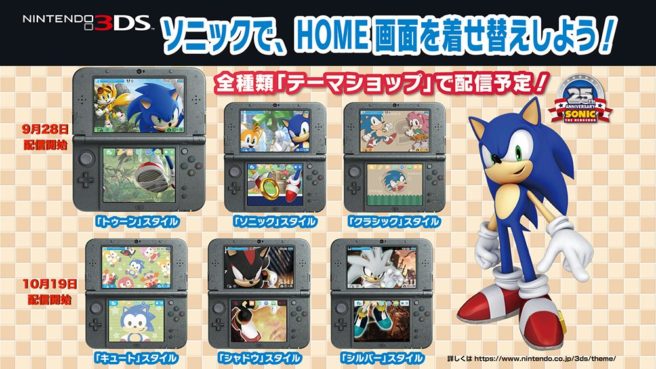 It’s rare that we make a post about new 3DS themes in North America as they’re typically covered in our Nintendo Download post, but we are making one exception today. That’s because four Sonic themes are out now, and one is even free.