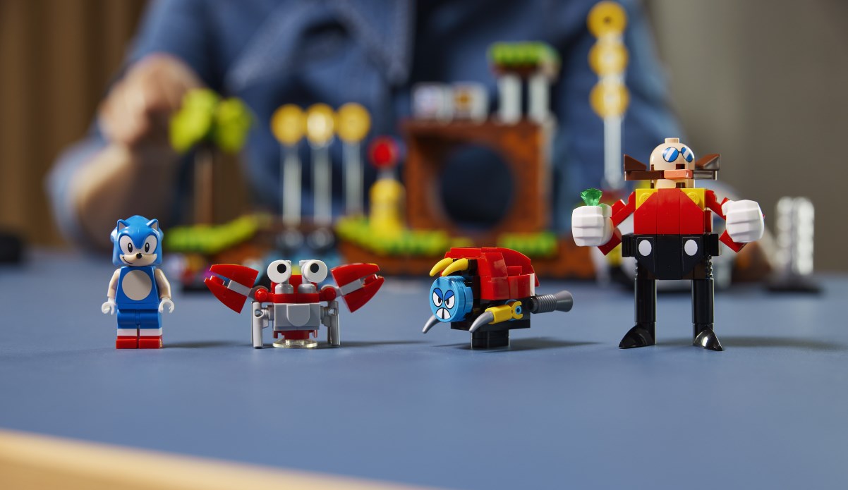 LEGO Ideas Sonic the Hedgehog Green Hill Zone has 1,125 pieces, including five minifigures. It features an updated version of Sonic, Crabmeat, Moto Bug, Dr. Eggman, and the Phantom Ruby. Buyers will also receive ten boxes of golden-colored Rings and a Technic lever to spring Sonic and friends into the air. Additionally, you can earn a gem reward as you build the set.