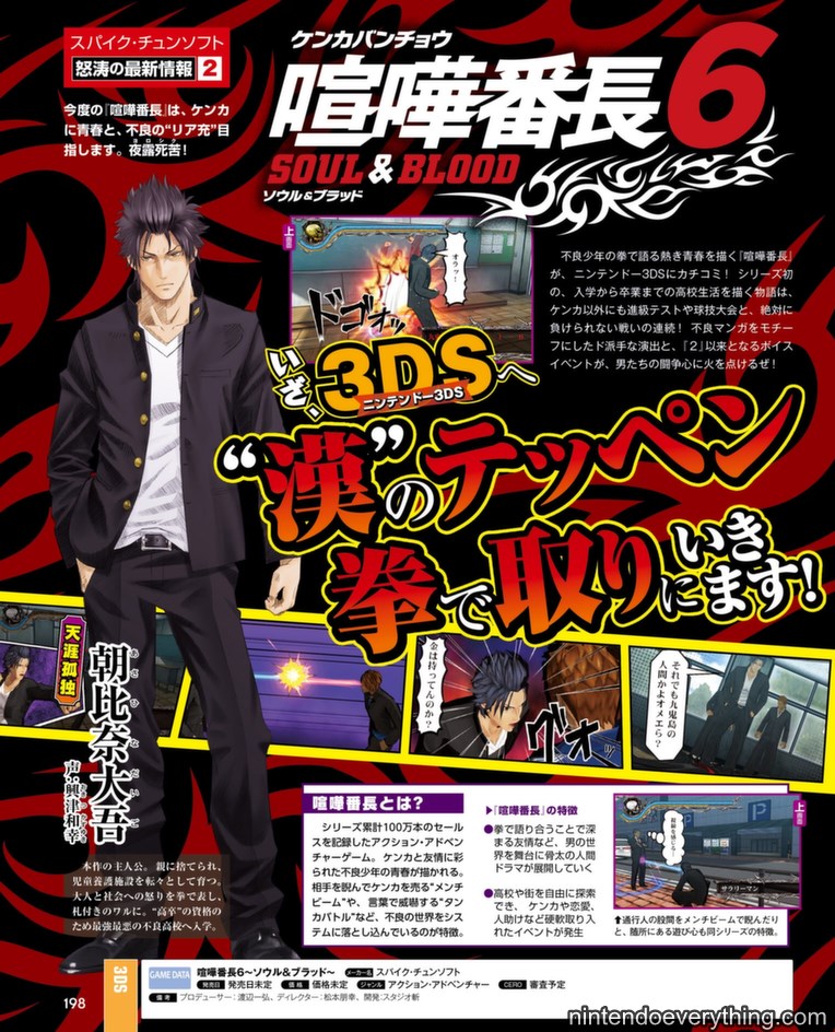 Spike Chunsoft has openend the official website for the upcoming sequel Kenka Bancho 6: Soul & Blood being released for the 3DS.