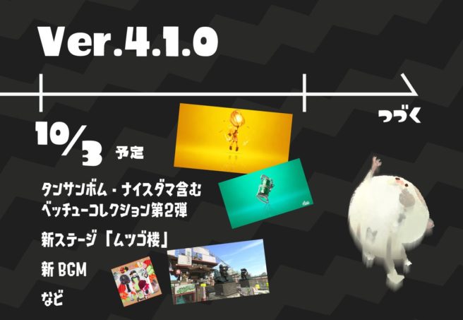 We’ve known for a while now that Splatoon 2’s 4.1.0 update would be out in “early October”, but now we have a confirmed release date: October 3rd in Japan, Europe and Australia (October 2nd in North America). The update will include the final new stage to be added to the game, Skipper Pavilion, as well as new weapons from the Kensa Collection and new music.