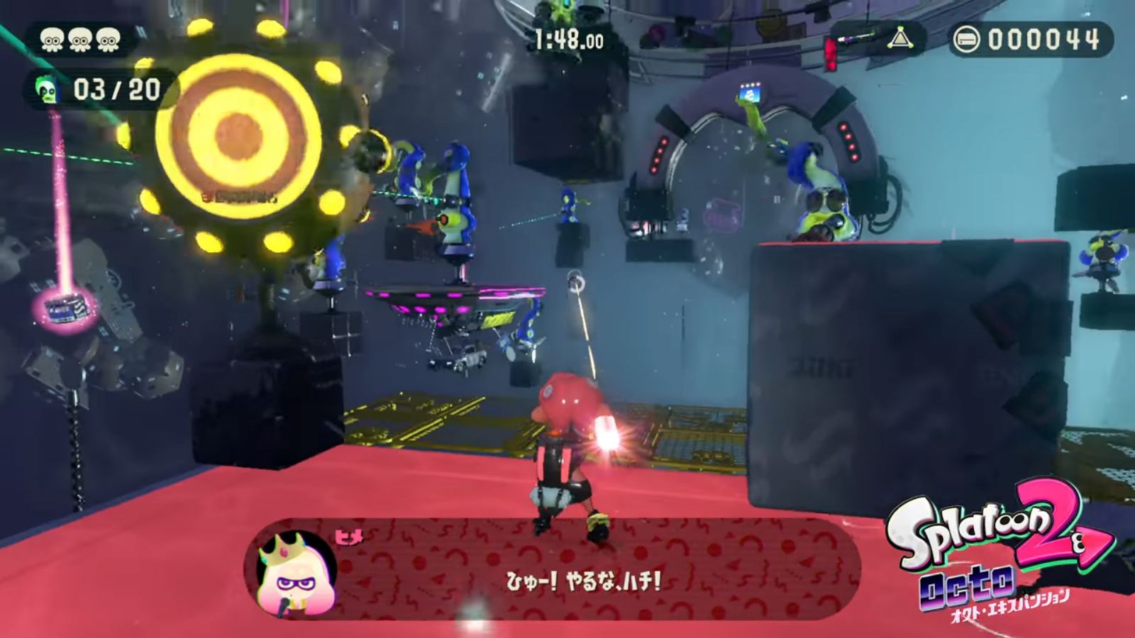Nintendo published a new (Japanese) video today which offers a brief gameplay look at Splatoon 2’s Octo Expansion. The video shows a level in which the player’s objective is to splat 20 enemies within two minutes.