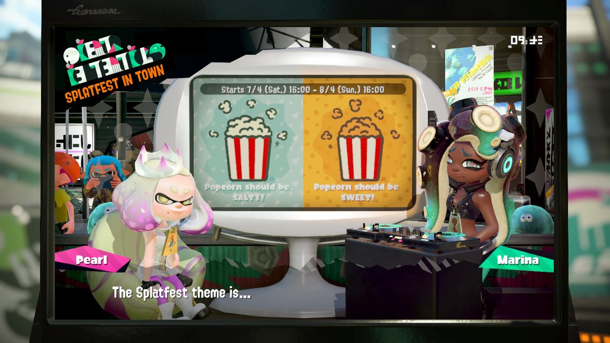 What do you prefer: eating popcorn as salty or sweet? If you’re in Europe, you can make your voice heard by competing in the Splatfest. It’ll be held for a full day starting on April 7 at 3 PM in the UK / 4 PM in Europe.