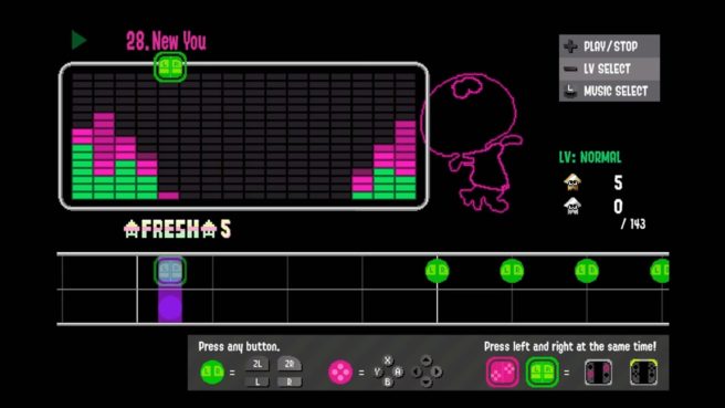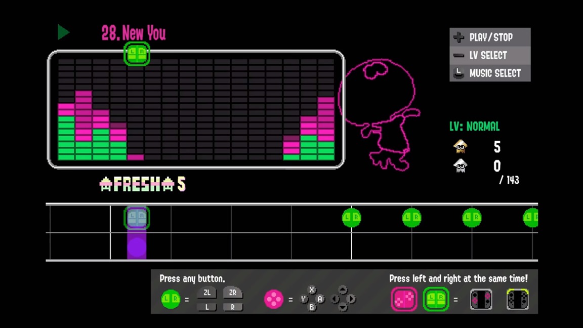 Splatoon 2 has a new mini-game called Squid Beats 2. Located in Inkopolis Square, you’ll need to press the right buttons while notes travel across the screen. Footage of two songs – New You and Shooting Starfish – Turquoise October – can be found below.