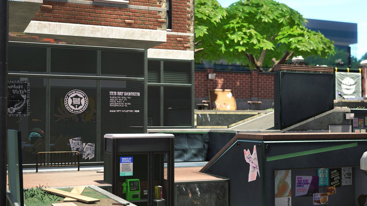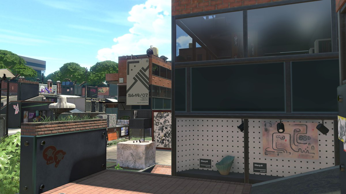Source“This is Inkblot Art Academy. Many an Inkling artist graduated from this prestigious institution. There are various sculptures and objects around campus, and climbing up on them can give you an advantage in battle. Even the random ink splashes on the campus buildings have an artistic flair to them.”