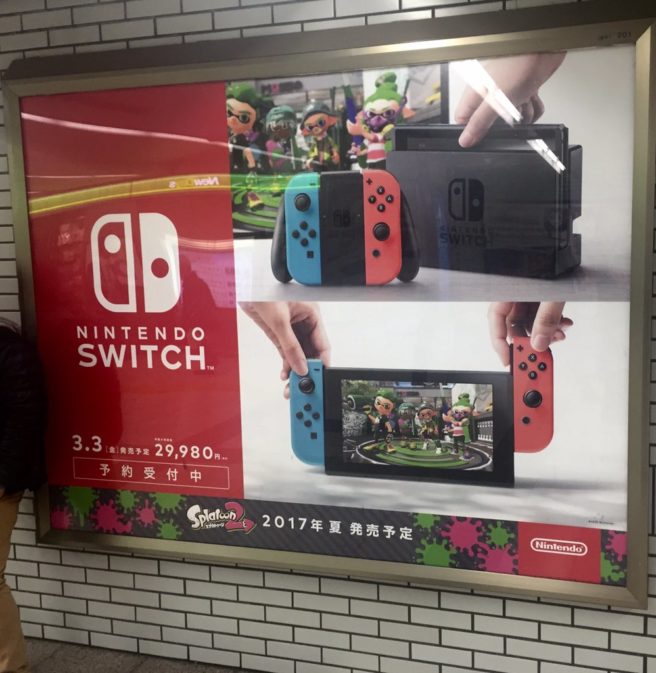 The above Switch ad was seen in one of Tokyo’s subways. Despite the game not being a launch title, Splatoon 2 is the hightlight. Thanks to eigotaku for the picture!
