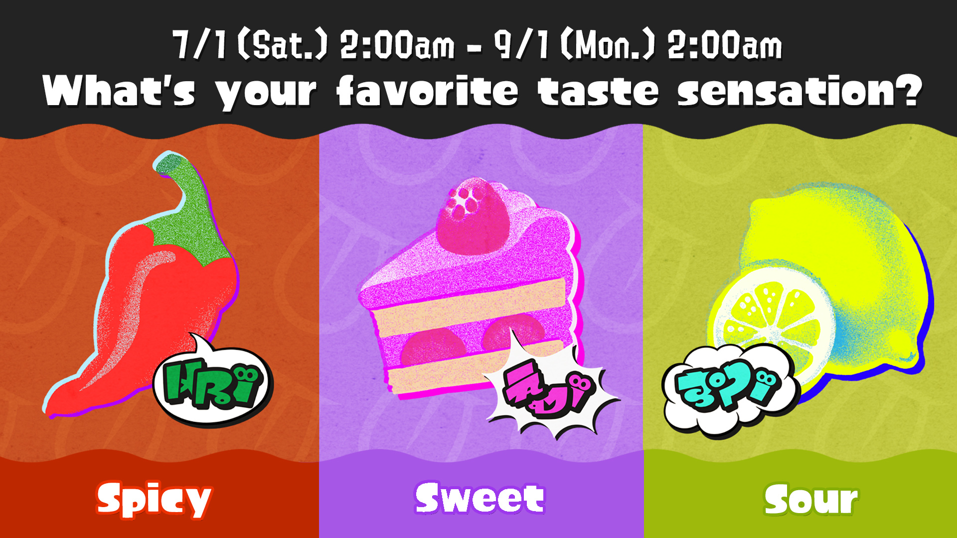 The Splatfest theme will make players pick which is their preferred taste sensation, with players able to choose between Spicy, Sweet, or Sour.