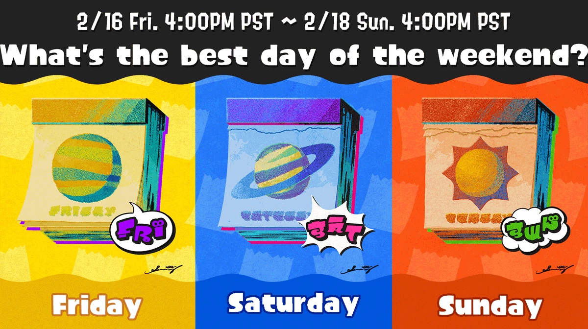 The results are in for the thirteenth official Splatfest in Splatoon 3, which was Friday vs. Saturday vs. Sunday. Nintendo asked players what they believe is the best day of the weekend.