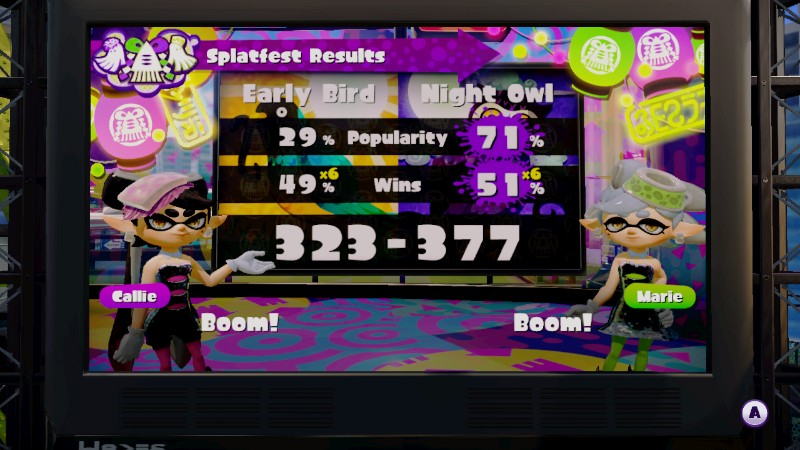 Following a day of intense battles, the latest North American Splatfest in Splatoon has ended. It’s now time to find out who prevailed: Team Early Bird or Team Night Owl.