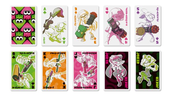 Original (5/12): It all comes full circle, as Nintendo will be producing a series of playing cards in Japan, with art based on Splatoon. The cards are set for a July release and will come in three different varieties, which you can check out below.