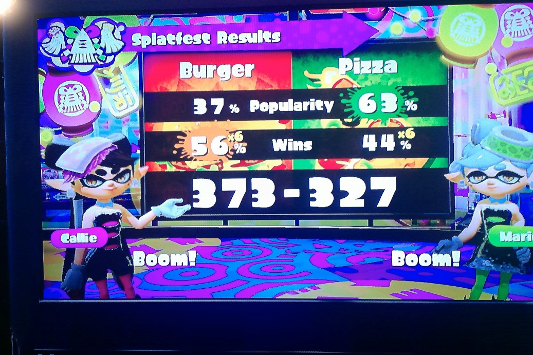 Splatoon’s latest North American Splatfest is now up and running. It’s the previously-announced “Burgers vs. Pizza” event.