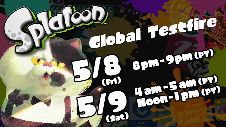Splatoon Global Testfire is now open for business. This first round will last from 8 PM PT to 9 PM PT (11 PM ET to 12 AM ET).