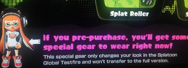 This is somewhat of a bizarre pre-order incentive. Those who pre-purchase Splatoon from the eShop are able to obtain special gear that can be worn in the demo. It can’t be transferred to the final game, strangely enough!