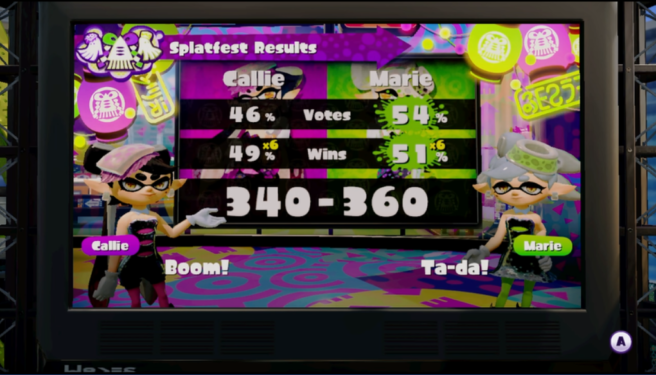 Nintendo shared the results of Splatoon’s final Splatfest on Sunday. It was close, but Team Marie prevailed due to slight edges in popularity and wins.