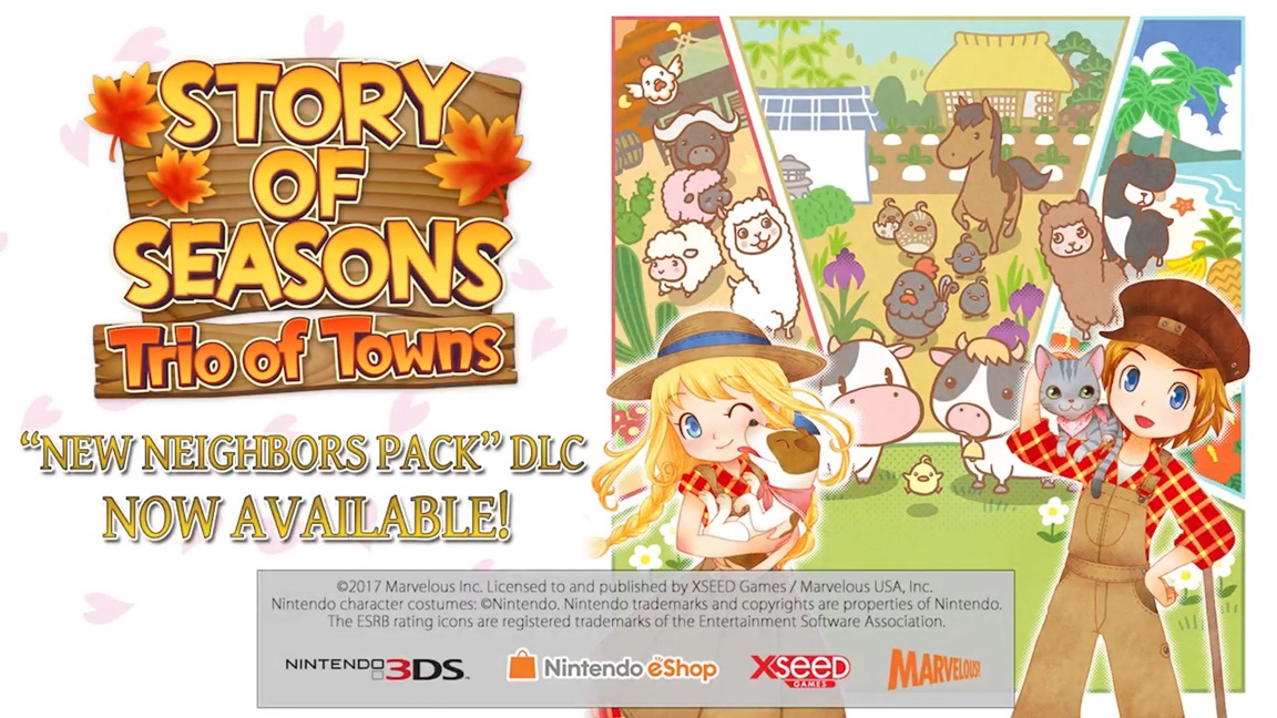 XSEED has posted what looks to be the last blog for Story of Seasons: Trio of Towns. But it’s a big one – XSEED talks about the upcoming update, the new DLC, and 3DS theme.