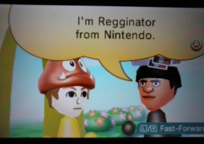 3DS owners who are connected to the Internet and have SpotPass enabled should be seeing a new guest in the StreetPass Mii Plaza soon. Nintendo has sent out the Regginator. Of course, that’s Reggie Fils-Aime, the president of Nintendo of America.