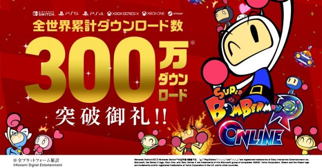 Super Bomberman R Online has been downloaded over three million times, Konami has announced.