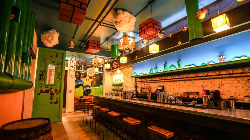 Complete with Bob-ombs, warp pipes, animatronic piranha plants and other iconic goodies hanging from the ceiling, the bar is a site to behold for any Nintendo fan. According to the project coordinator, Éamonn Fetherston, the centerpiece of the decorations is the Star Power button.