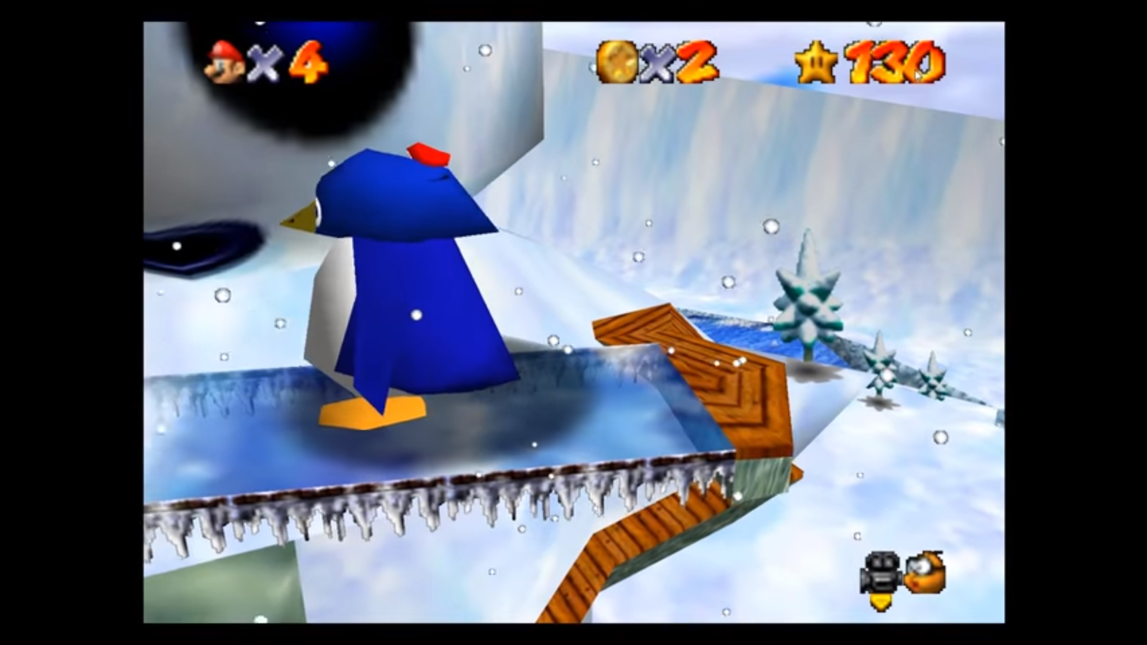 For Super Mario 64, we’re able to see a few interesting things. First, Cool Cool Mountain’s portrait is just a generic snow-capped mountain. Other than that, the footage shows placeholder voices for Mario.