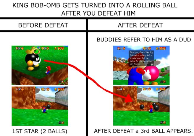 The first bob-omb you come across in Bob-omb Battlefield will mention that the King was a “dud.” Coupled with the fact that the ball would resemble the King if given facial features, the theory is definitely plausible. Some players may have noticed some of these things in the past, but they’ve definitely not been widespread.