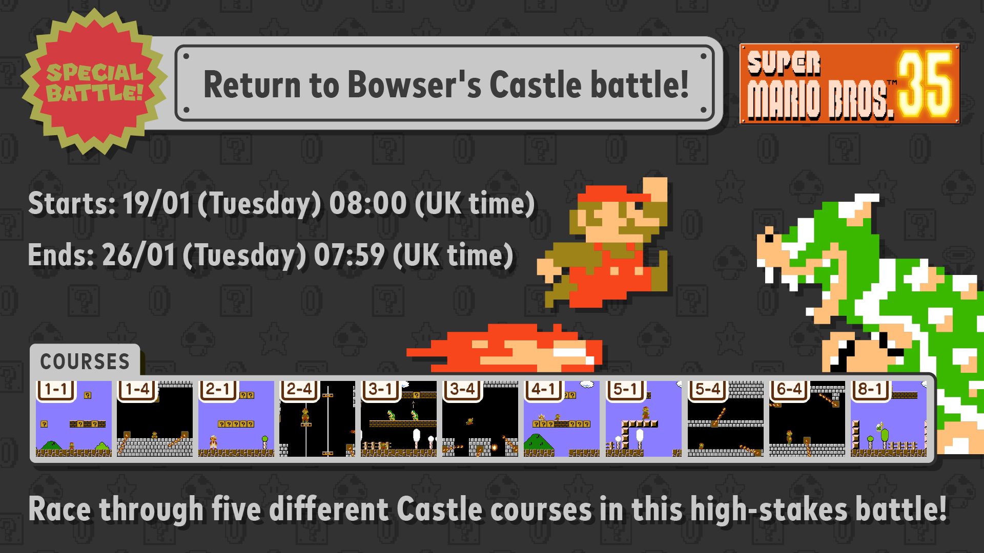 The new Special Battle event goes live in Super Mario Bros. 35 on January 8. Expect it to last until January 11.