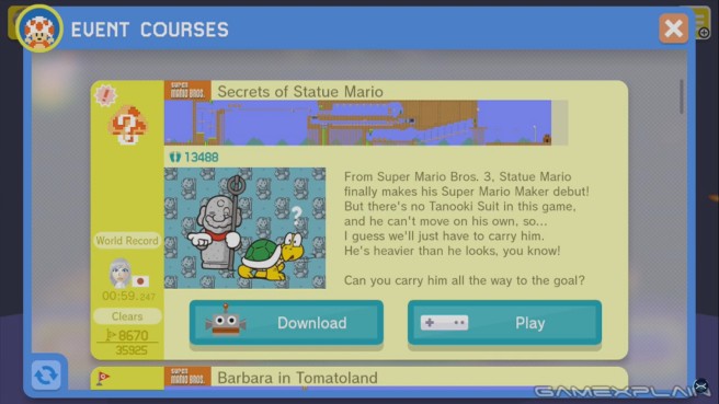 Super Mario Maker – Secrets of Statue Mario Event Course footage