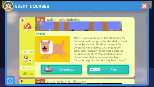 It’s been quite while since Super Mario Maker received a new costume and Event Course, but Nintendo just added in some new content a little while ago. Players can unlock Undodog after completing the “Walkin’ with Undodog” level.