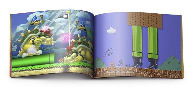 It’s basically a throwback to the boxart for the original Super Mario Bros. on Famicom! Pretty neat stuff.