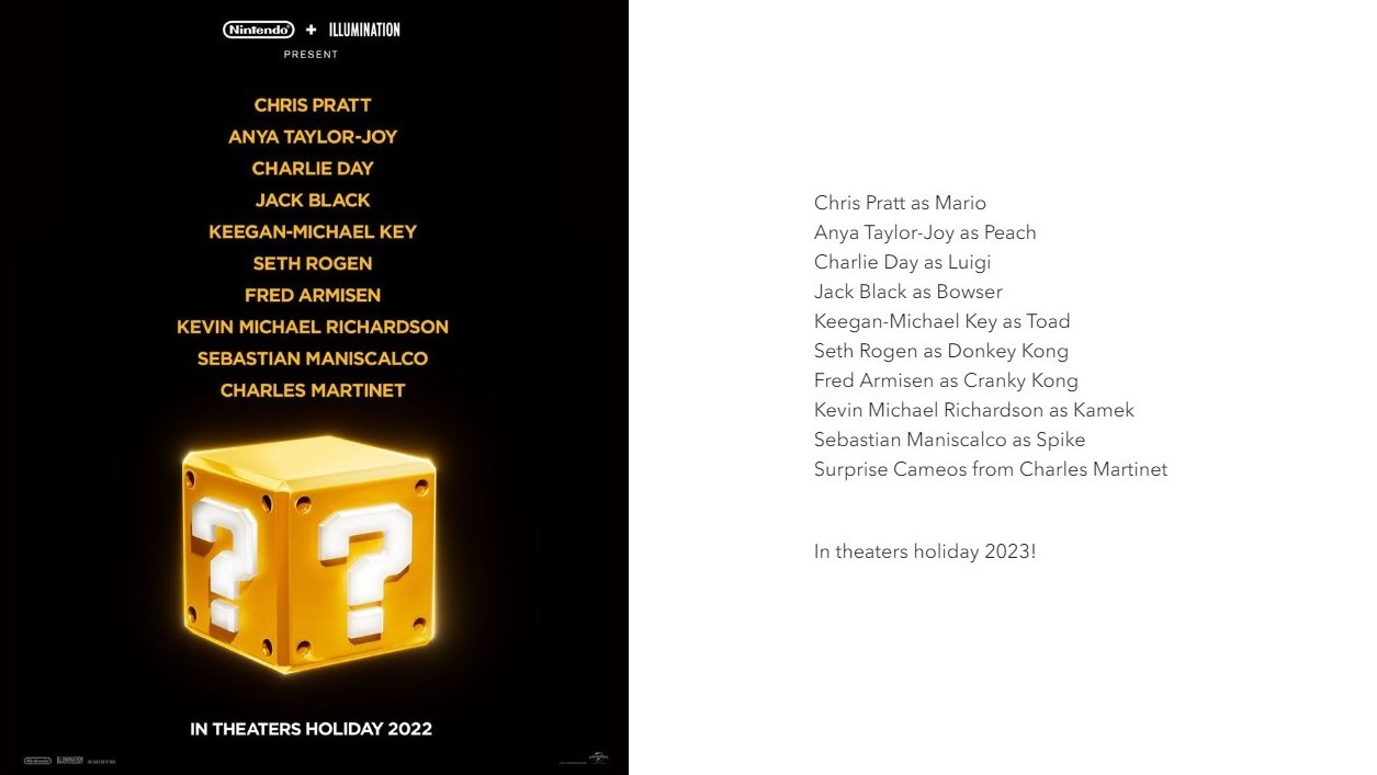 While the date on the left lists Holiday 2022, an outdated release date that was changed to April 2023 a few months ago, the right side lists a new date of “holiday 2023”, possibly indicating that the movie has once again been delayed, this time from its previously mentioned April 2023 release.