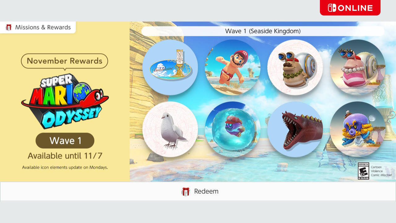 Original (10/31): Super Mario Odyssey is once again a featured game for Nintendo Switch Online user icons. The first time this happened was in March, and the title popped up once again with new designs around July.