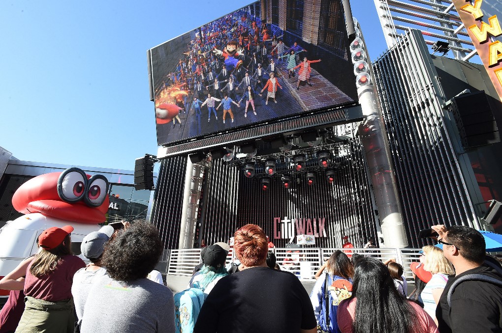 In this photo provided by Nintendo of America, fans watch the world premiere of the “Jump Up, Super Star! – Super Mario Odyssey Musical” video, featuring a jazz-themed song from the game. Fans gathered at Universal CityWalk in Los Angeles to celebrate the launch of the Super Mario Odyssey Tour, which will take Mario to five special stops across the country, ending in New York on Oct. 26, the eve of the game’s launch exclusively for the Nintendo Switch system.
