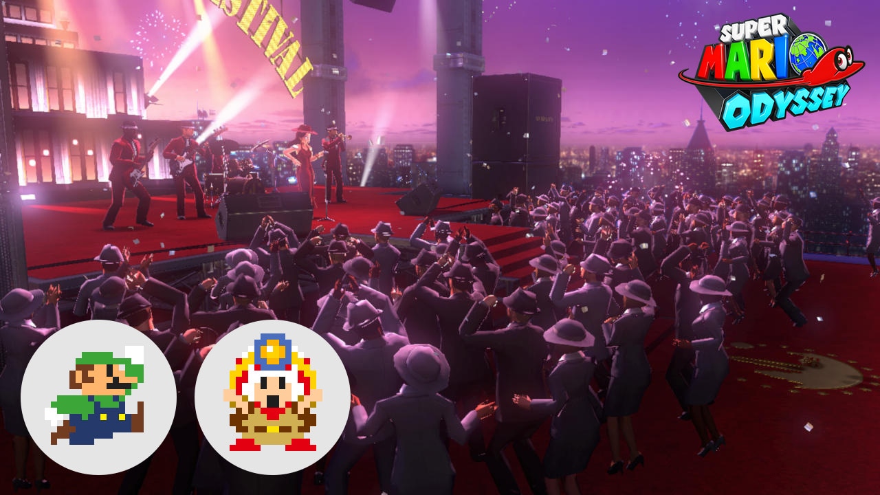As mentioned earlier this week, Super Mario Odyssey is celebrating its first anniversary with a mini event. 8-bit Toads and Luigis are showing up in New Donk City’s festival where players can earn a bunch of coins. Check out some footage from the event below.
