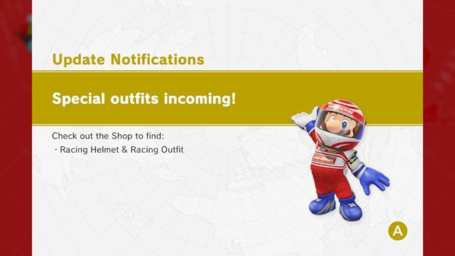 Super Mario Odyssey adds Racing Helmet and Racing Outfit