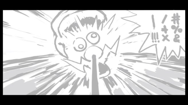こちらは滝の国「ダイナフォー」に到着するデモの絵コンテです。電気にキャプチャーするシーンも、帽子の国では「静」のイメージで、滝の国では「動」のイメージで描いているんです。 pic.twitter.com/72k76O54AE